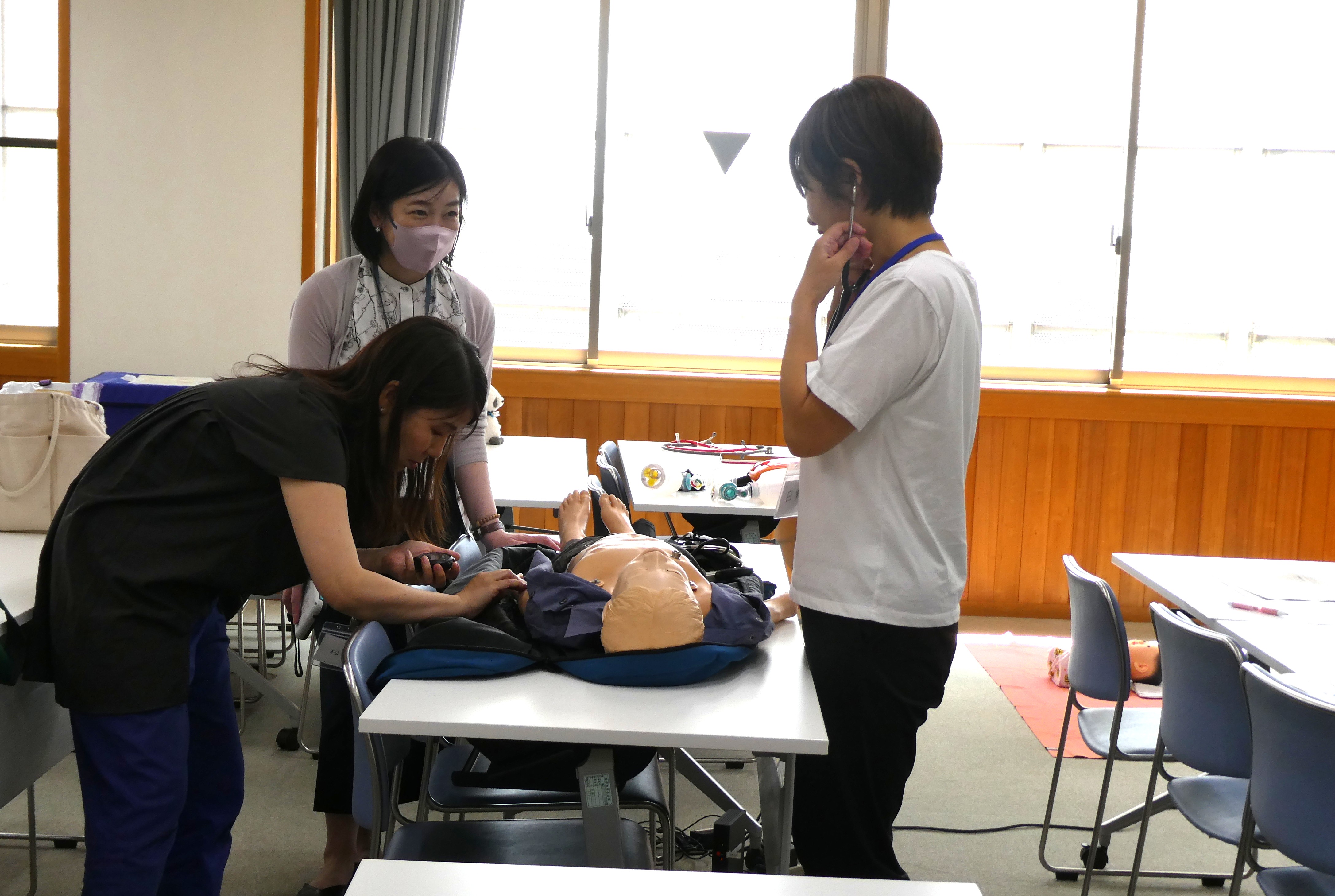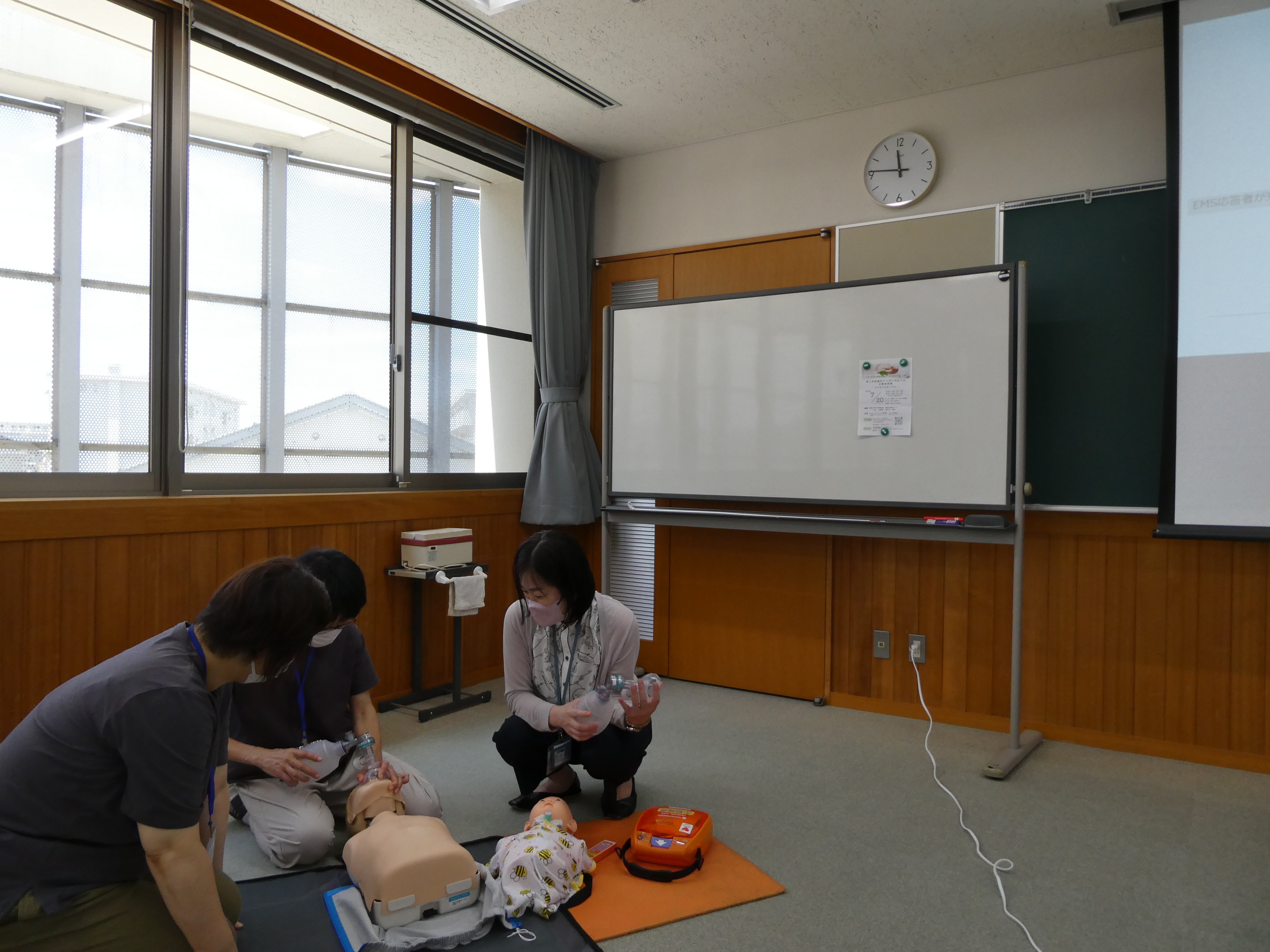 参加者は熱心に学習されていました。受講者の感想は『子どもの「急変時の対応」「バックバルブマスクの使用方法」が学べた』、「これから医療的ケア児を看るので所属全体で学習していきたい」などでした。